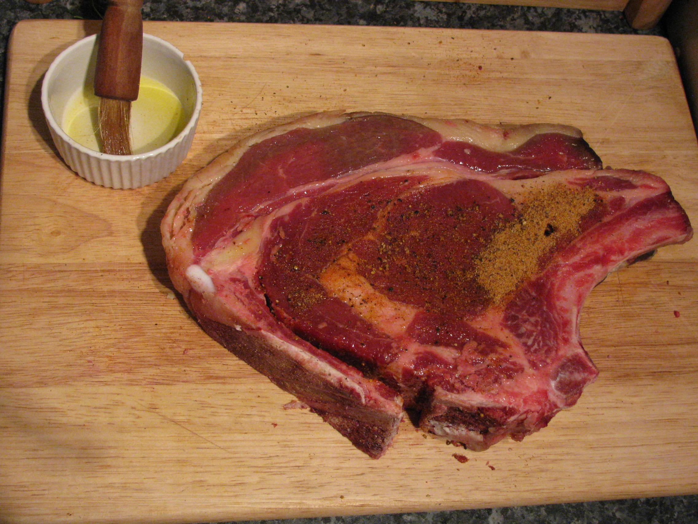 This time I opted for rib-eye, 1.2KG, in one piece, on the bone. When given the choice, I always cook steak on the bone as the bone itself provides some extra flavour to the meat. It also makes the steak slightly less susceptible to overcooking, which is especially important when it comes to grilling your steak over an open fire.